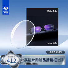 依视路(ESSILOR)防蓝光防紫外线非球面近视镜片钻晶A4两片装 来架加工 1.60(较薄)