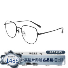 依视路24新品近视眼镜片防蓝光轻松视觉视野清晰非球面爱赞全晰膜致2片 钛+金属-全框-4023BK-黑色 1.60R